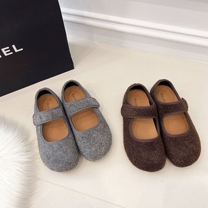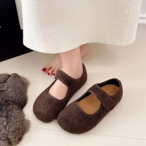 厚底魔术贴毛呢单鞋女2025秋冬季新款软底配裙子玛丽珍单鞋女批发