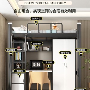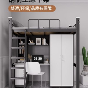 上床下桌组合床学生宿舍高架床小户型家用铁艺床单上层下空公寓床