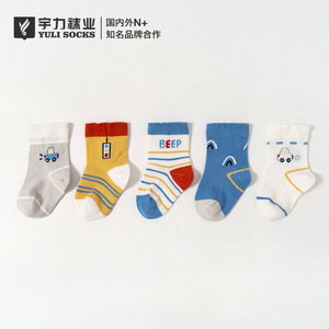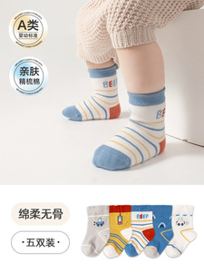 婴儿袜子2025秋季新品卡通字母横条纹棉袜男童宝宝袜子批发中筒袜