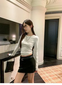 白色打底衫休闲百搭长袖T恤女秋季小众修身显瘦内搭短款灰色上衣