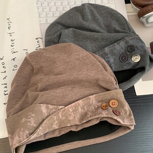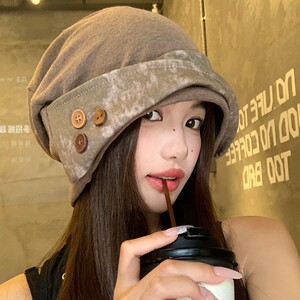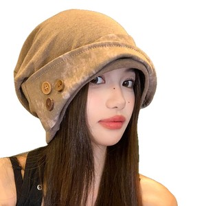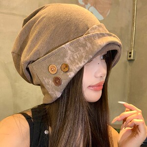 日系纽扣复古堆堆帽女废土风小众百搭冷帽大头围显脸小包头帽子潮