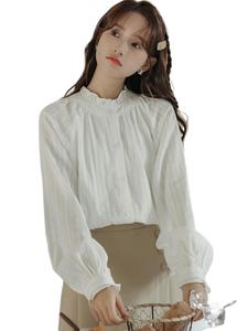 立领长袖衬衫女加绒加厚设计感小众秋冬打底新款衬衣宽松百搭上衣