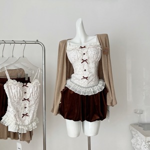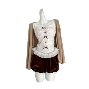2025实拍秋季新款 氛围感吊带上衣开衫花苞短裤