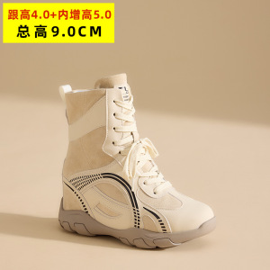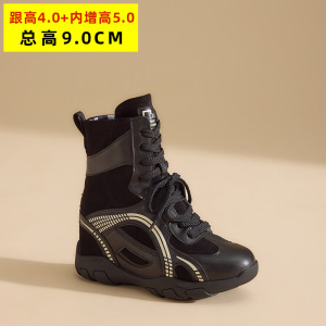 8090-1尖头马丁靴反绒2025新款秋冬女式皮靴骑士靴内增高8CM