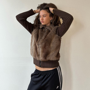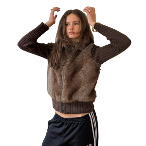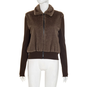 Q25TP270外贸跨境女装秋季新款气质毛毛拼接假两件拉链款长袖外套