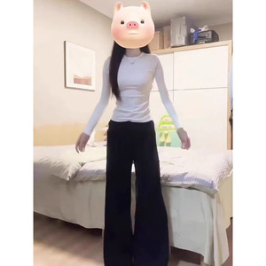 秋季纯色正肩打底衫女冬季加绒紧身修身内搭长袖圆领黑色上衣t恤