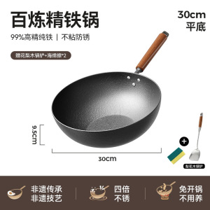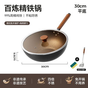 30cm平底玄武炒锅(无盖)+送花梨木锅铲+海绵擦