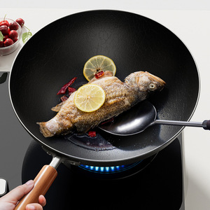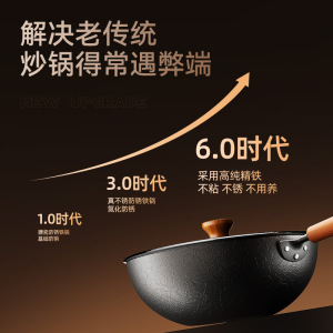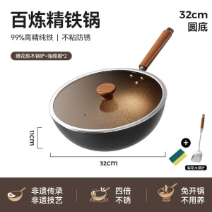 新款龟纹玄武炒锅家用圆底炒菜锅无涂层老式铁锅平底炒锅通用炉灶