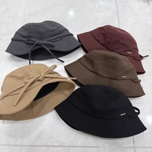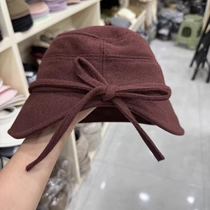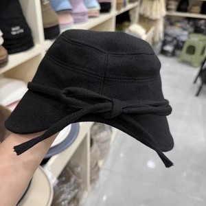 秋冬款保暖百搭显瘦毛呢渔夫帽子女小众可爱蝴蝶结系绳不规则盆帽