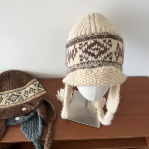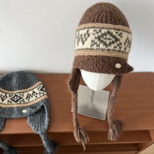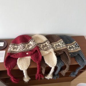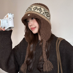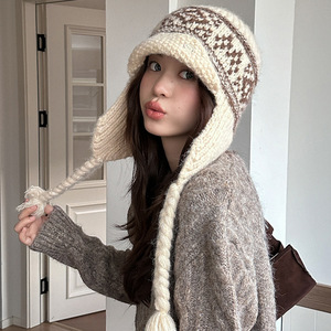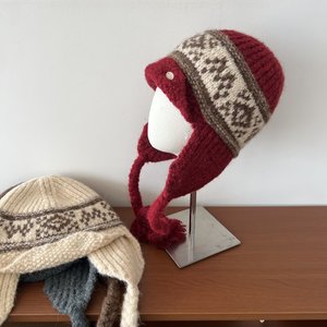 费尔岛提花针织护耳帽冬天保暖防寒辫子民族风川西旅游雷锋帽女