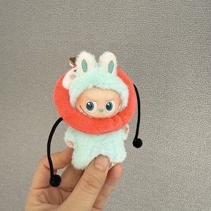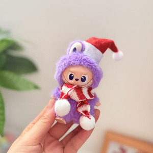 迷你版4.0LABUBU搪胶脸毛绒盲盒玩偶衣服圣诞套装小鼻嘎心底密码