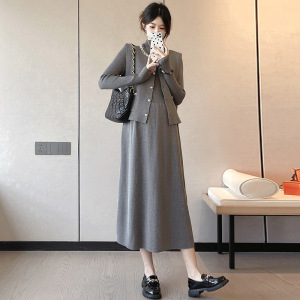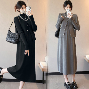 实拍现货孕妇秋冬新款毛衣连衣裙设计感钉珠开衫马甲两件套套装潮