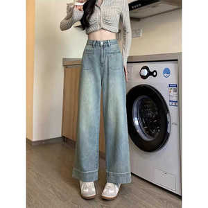 梨形身材高腰阔腿牛仔裤女夏季大码胖mm复古宽松显瘦小个子直筒裤