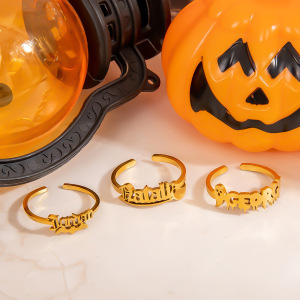 跨境不锈钢手饰万圣节系列INS风英文字母18K金保色戒指女