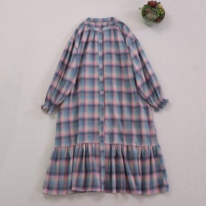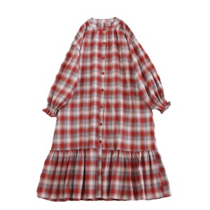 2025秋季新款森女文艺格子圆领长袖连衣裙宽松休闲百搭开衫长裙女