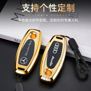 车标钥匙扣无声防风打火机充电打火机永久充电便携点烟器礼物新潮