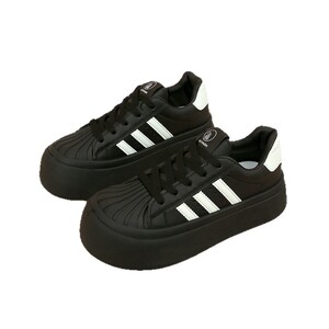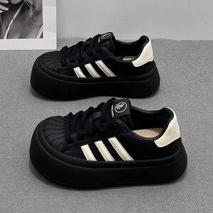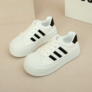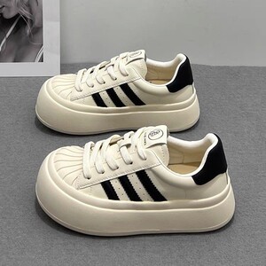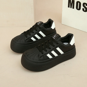 贝壳头厚底板鞋女2025年春秋季新款休闲百搭大头鞋面包小白鞋子