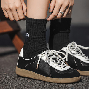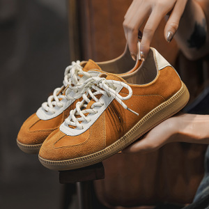 2025秋冬新款小众软面舒适百搭德训鞋运动休闲透气时尚圆头板鞋子