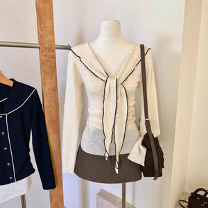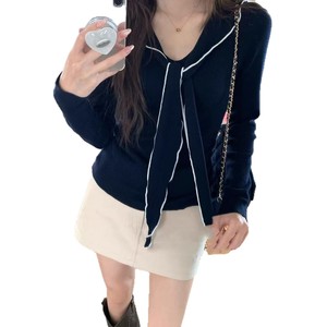 2025年秋季新款百搭短款韩版设计感小众针织套头女海军领毛衣上衣