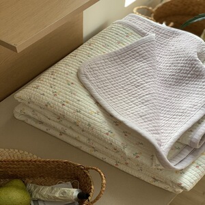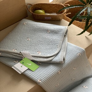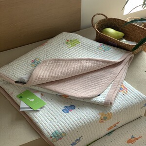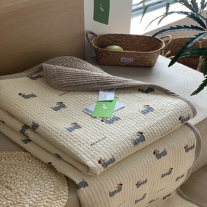 韩国大鹅家秋冬新款一面棉一面绒双面可用绗缝单品床盖砂洗炕盖