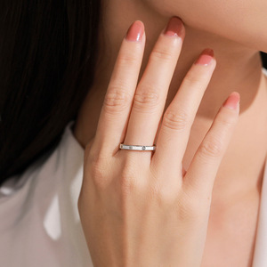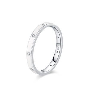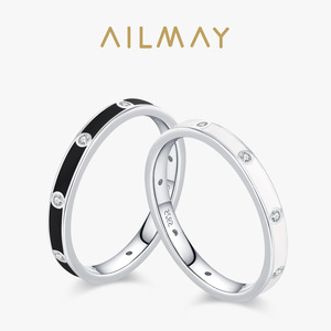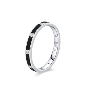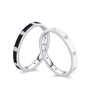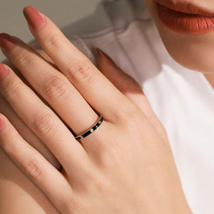 S925通体纯银新款黑白双色珐琅排钻戒指女简约小众设计食指戒组合
