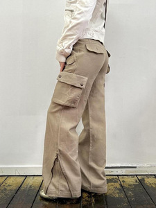 美式街头风多口袋浅色拉链降落伞长裤跨境美拉德低腰工装牛仔裤