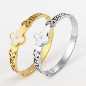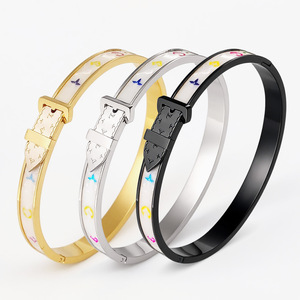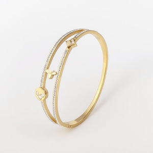 欧美跨境驴家钛钢手镯不掉色饰品镶钻白贝手环百搭手饰首饰配件