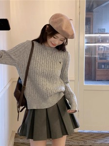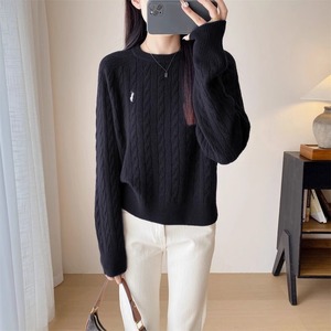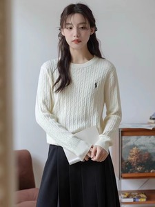 打底衫女秋圆领修身显瘦大码胖mm麻花小马提花针织上衣