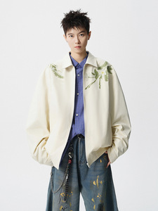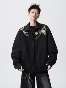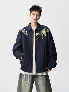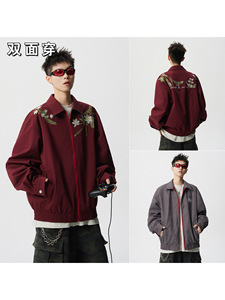 NASA大花卉刺绣拼接夹克春秋季2025新款潮流宽松青少年两面穿外套
