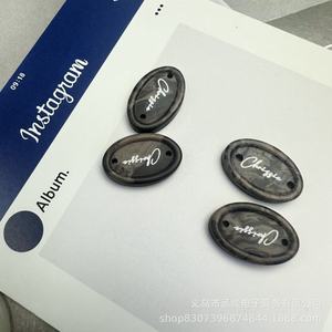 现货仿贝树脂商标吊牌字母椭圆蝴蝶结衣标高端百搭装饰纽扣60款