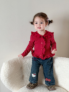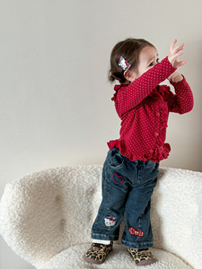 上衣:97%棉3%氨纶 牛仔裤:70%棉29%涤纶1%氨纶