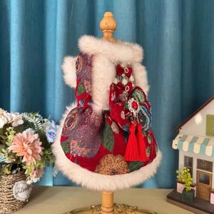 狗狗衣服过年喜庆唐装秋冬加绒加厚公主裙小型犬马尔济斯中国风