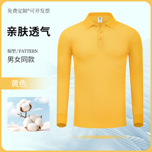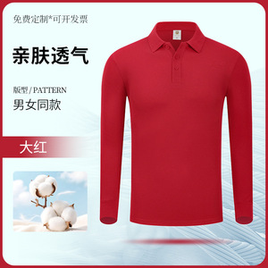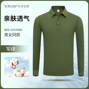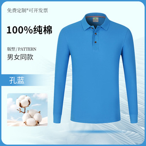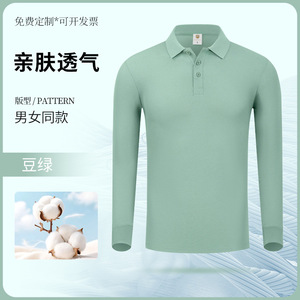 纯棉长袖Polo衫定制印绣logo秋季商务企业团体工装翻领t恤工作服