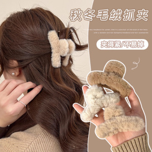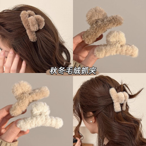 毛绒抓夹韩国高级感发卡大号秋冬发夹女头发鲨鱼夹子后脑勺头饰女