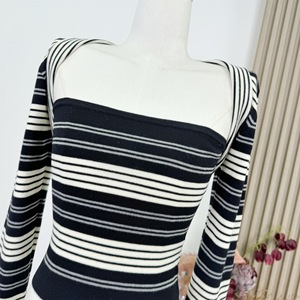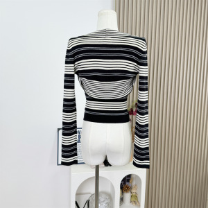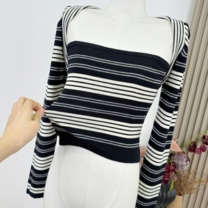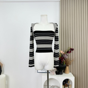 心动波尔卡 复古条纹针织抹胸短上衣长袖毛衣坎肩两件套