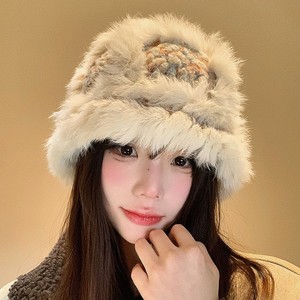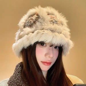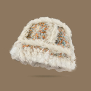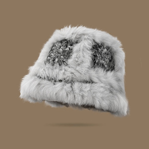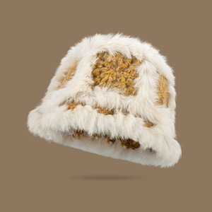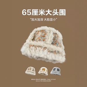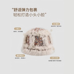 真兔毛云朵针织醒狮帽子女保暖百搭显脸小渔夫帽秋冬季毛绒绒盆帽
