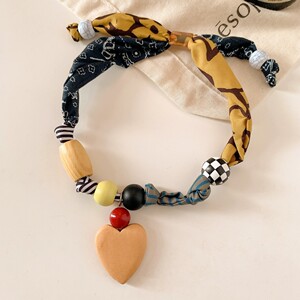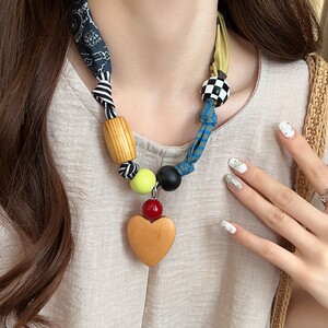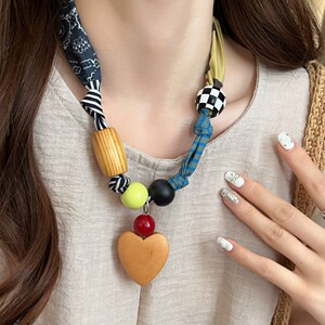 文艺复古木质爱心吊坠项链小众设计感彩色串珠锁骨链个性气质颈链