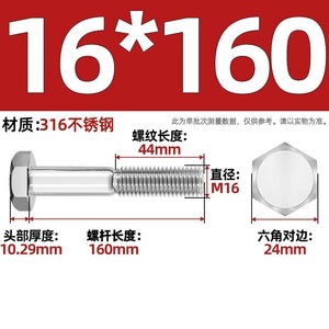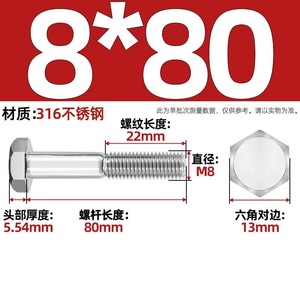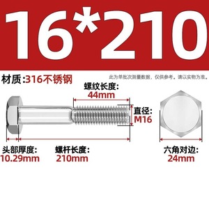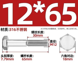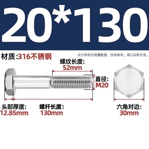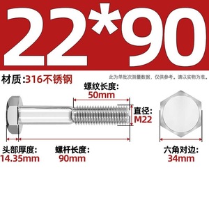 粗杆半牙螺丝316不锈钢外六角螺栓半螺纹半扣螺钉螺杆M6M8M10-M30