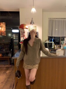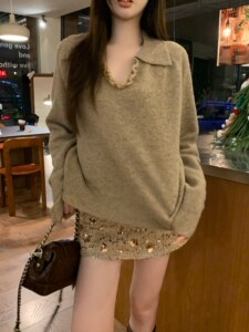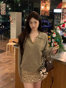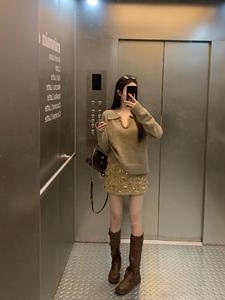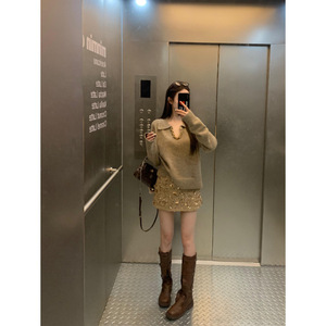 法式V领重工亮片毛衣女装2025新款初秋冬季独特漂亮针织衫上衣服