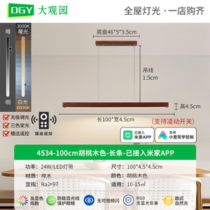 餐厅灯一字长条新中式餐桌灯胡桃木色复古前台吧台中古风灯具335L