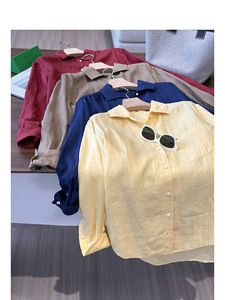 鼎奢系列_轻奢G级_L定ZHIP,4色亚-麻衬衫女一件代发