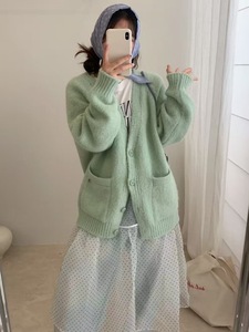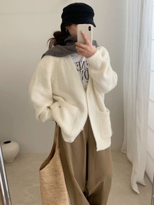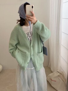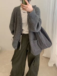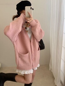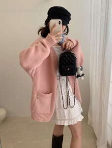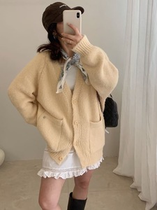 新品慵懒风宽松领外套女装秋冬针织开衫上衣G1515