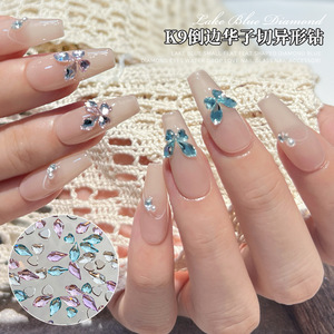 爆闪K9平底美甲钻饰品新款倒边华子切精品爱心枫叶异形钻美甲饰品