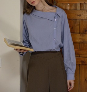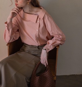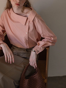 Dailyart“日落回信”工艺洗天丝锦暗格纹翻领斜门襟长袖衬衫上衣