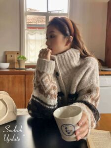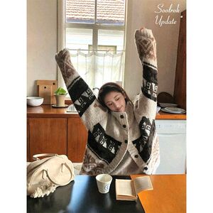 法曼斯慵懒风费尔岛针织毛衣开衫外套女秋冬新款翻领宽松外穿上衣