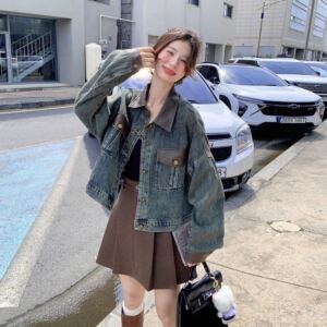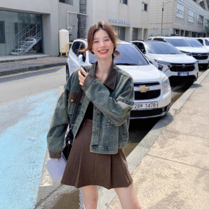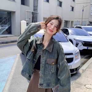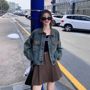 别致独特牛仔拼皮短外套女春秋2025新款通勤百搭可盐可甜短款上衣