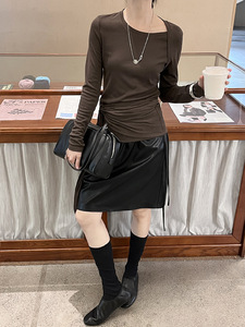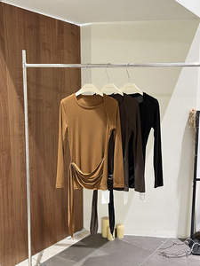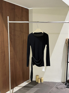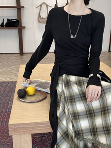 初打十三行秋季新款法式天丝不规则系带内搭长袖修身T恤女TB915