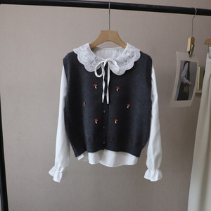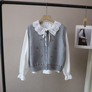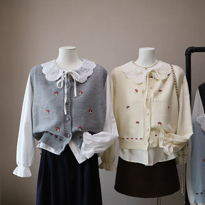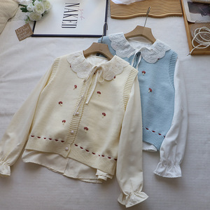 [比正]2025秋季新款韩版甜美娃娃领衬衫针织马甲坎肩两件套女5011