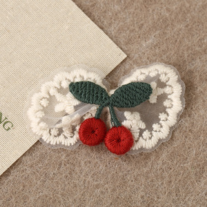 新款日韩风可爱刺绣布贴花朵樱桃造型手工DIY服装箱包装饰补丁贴