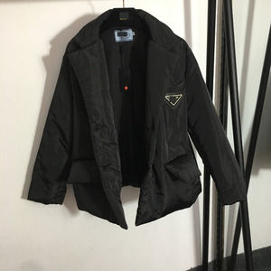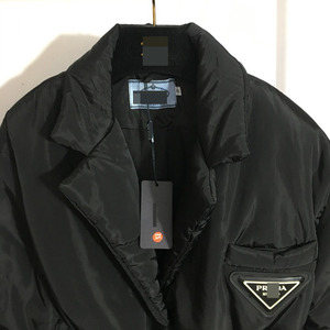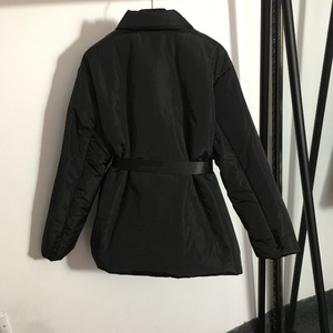 25秋冬新款胸前logo胶皮三角标腰带收腰翻领长袖面包服 棉服外套